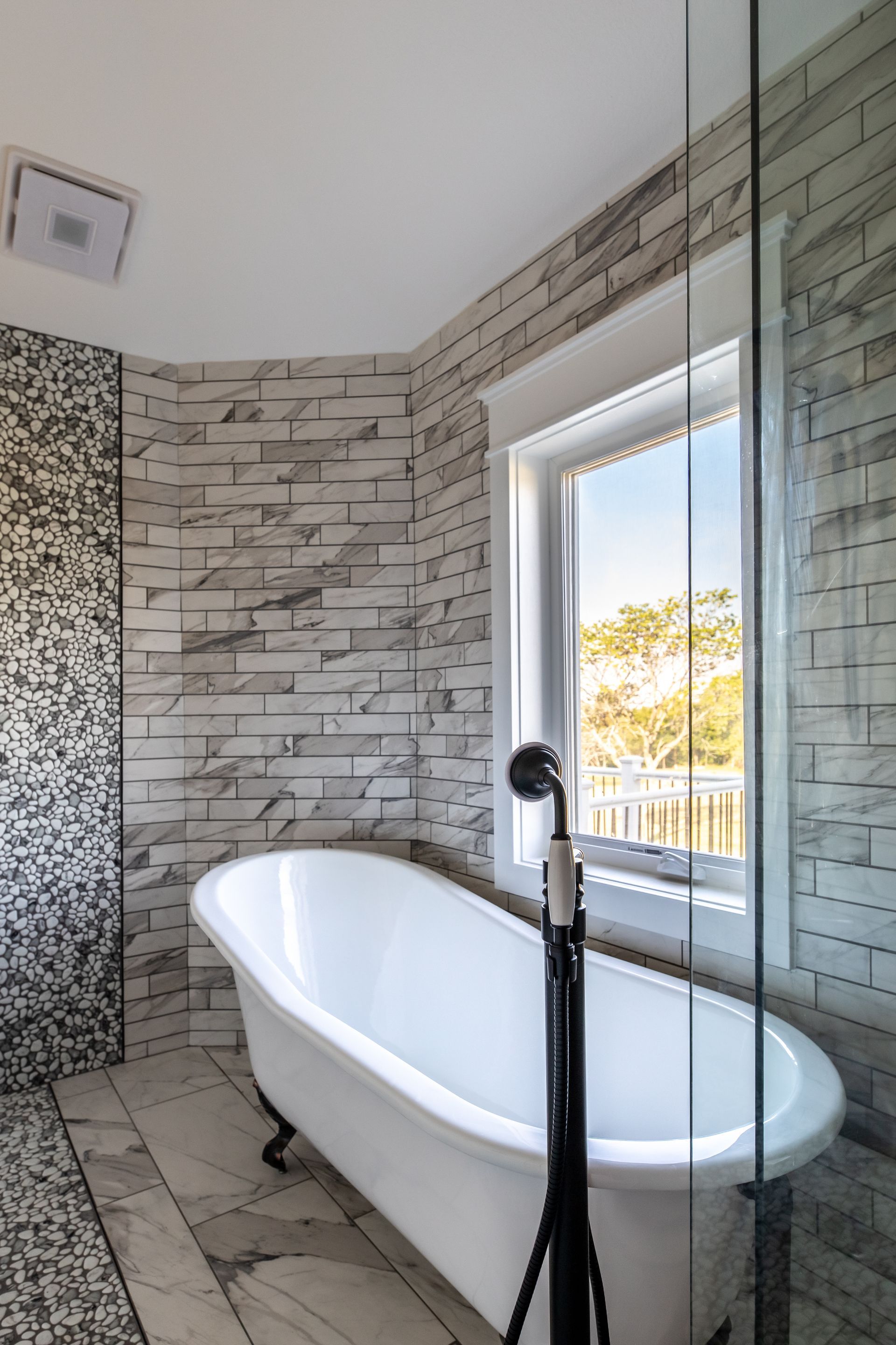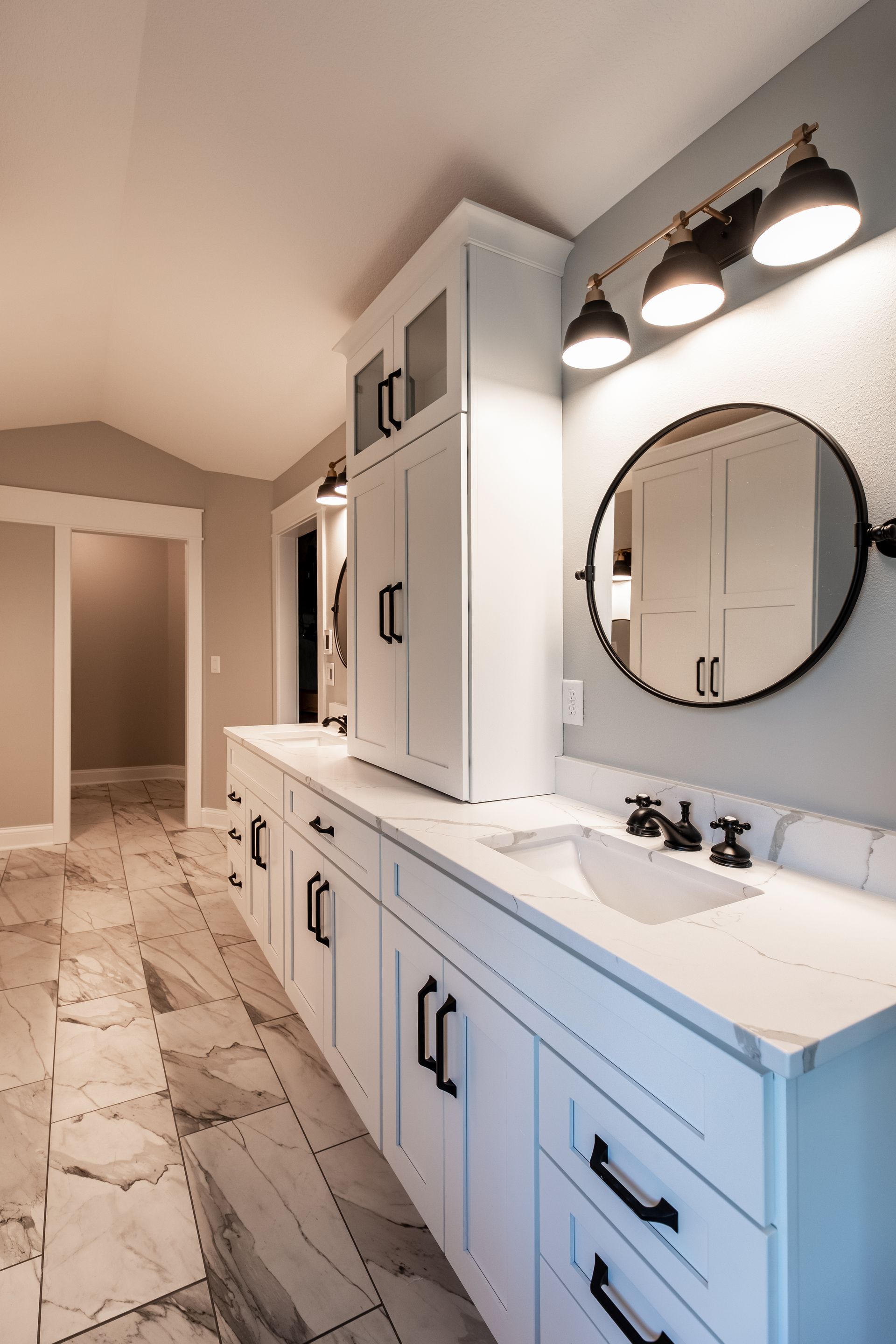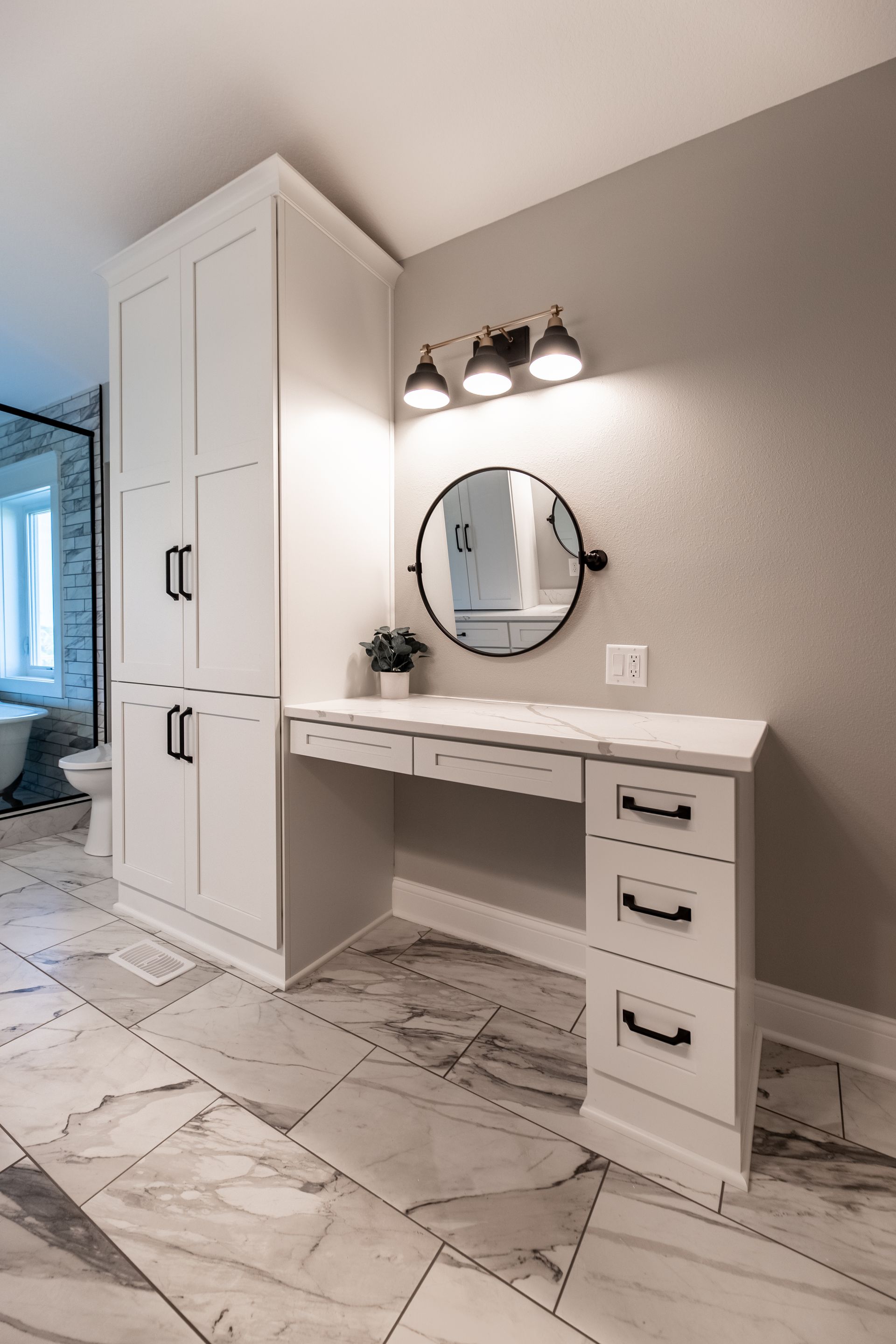A master bathroom remodel in Norwalk. This project included lots of tile finish with custom high end cabinetry.