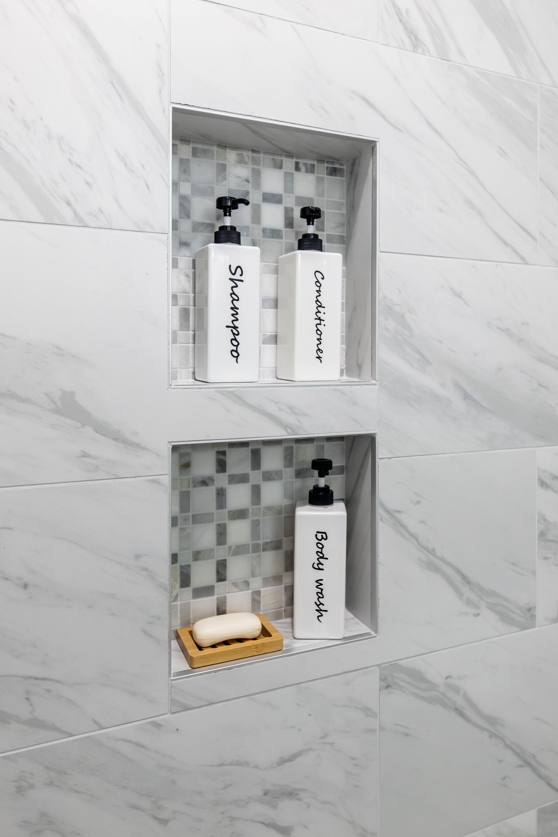 A master bathroom and closet remodel in Indianola. For this project we removed a large glass block window to install a high window in the new shower area. A new tile shower with custom glass door, completely custom closet build out, and new finishes for everything really transformed this space.